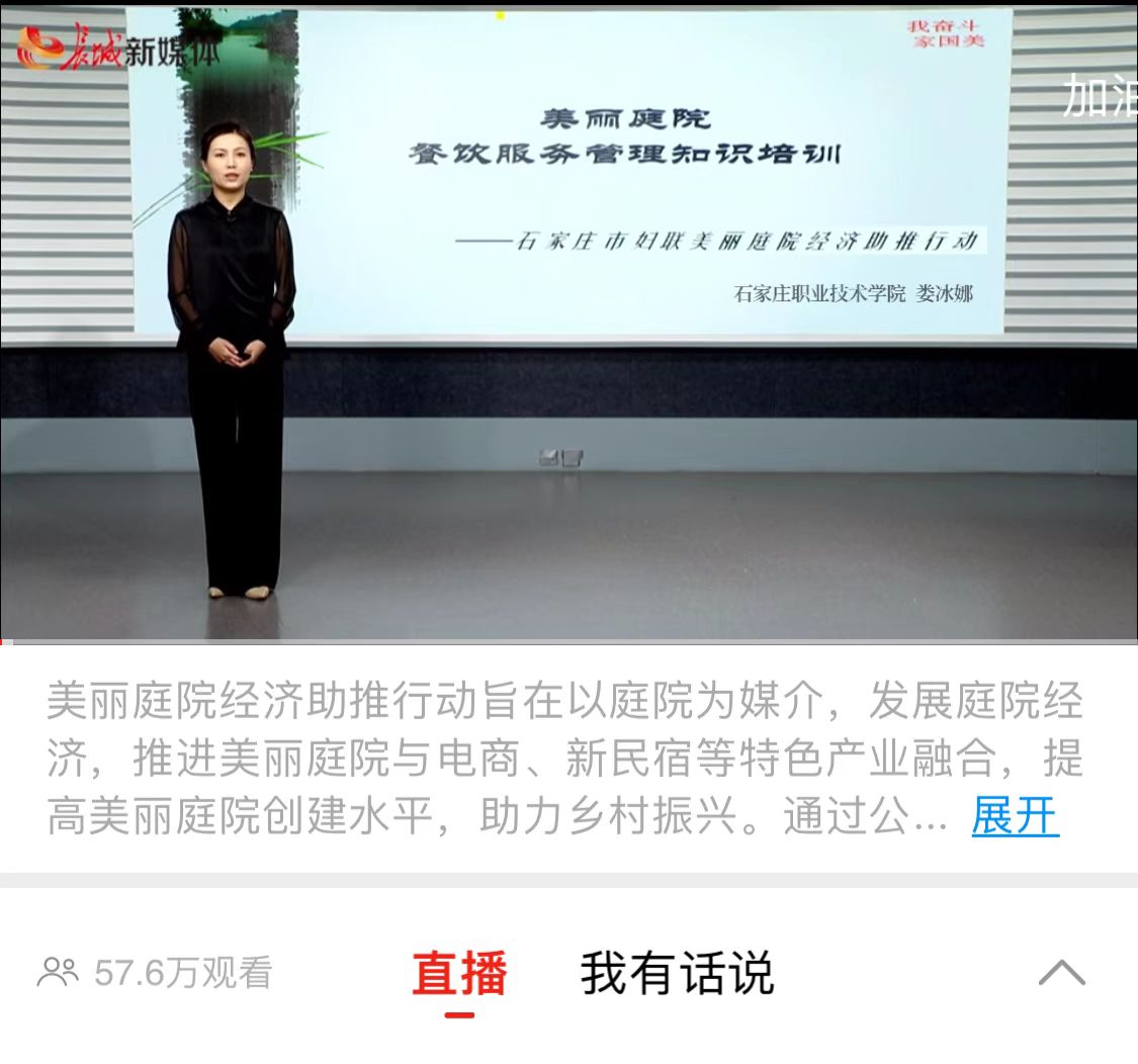 部署会后,三位老师在深入调研的基础上,围绕促进庭院发展目标,多次与市妇联就技能培训、课程开发,协助打造电商直播庭院、经济型美丽庭院建设等进行探讨沟通。近日,三位老师结合自身优势,针对群众所需,通过长城新媒体平台,以网络直播的形式开展了一系列美丽庭院经济助推技能培训。截止目前,三位老师的网络直播课程播放量累计已突破百万。