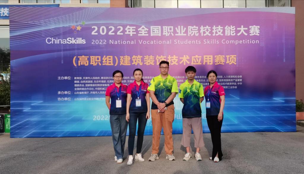 8月25日,2022年全国职业院校技能大赛--(高职组)建筑装饰技术应用赛项在山东济南开赛,共有来自全国近60所院校的团队参加比赛。我院建筑工程系李小光、崔紫阳两位同学在领队匙静、指导教师朱靓、丁晓静的带领下,经过激烈角逐,取得国家级团体三等奖的优异成绩。
